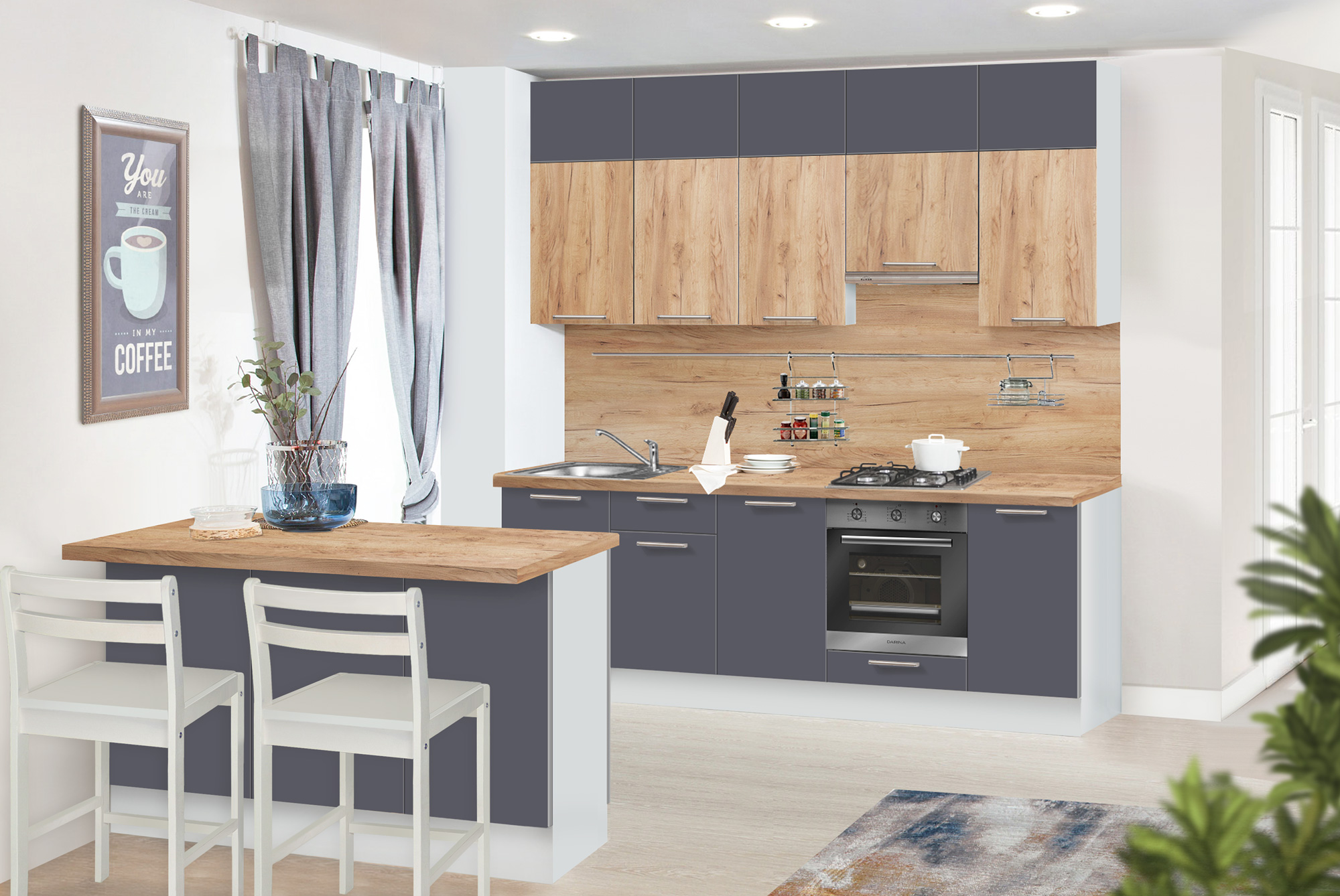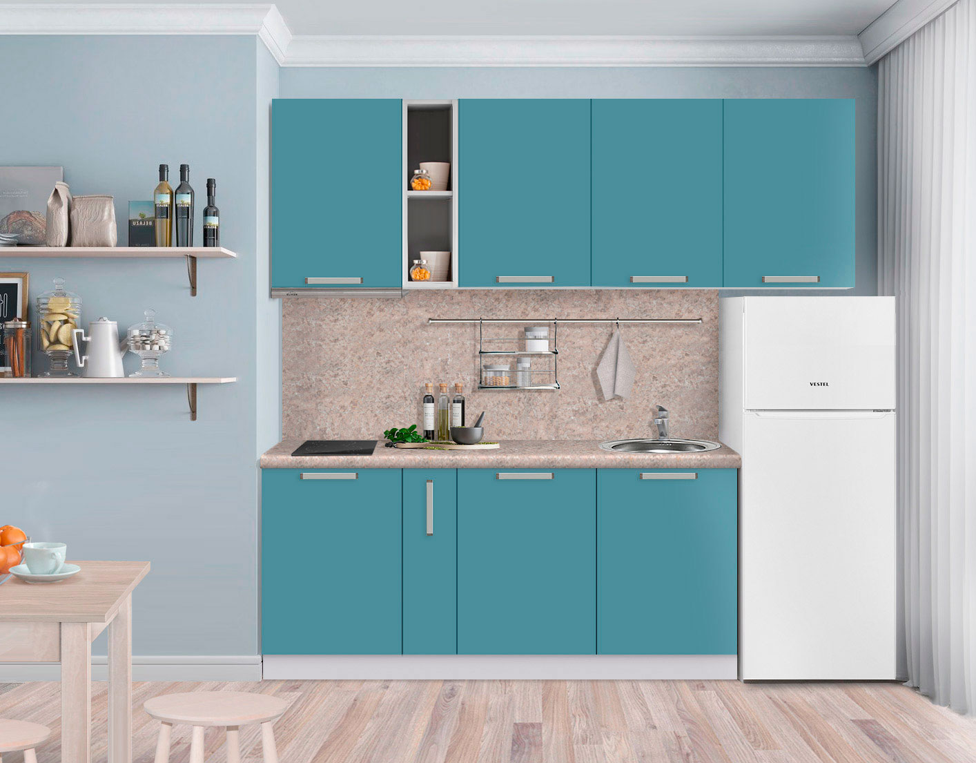 Базовая комплектация: L 2,2м, модули + столешница.