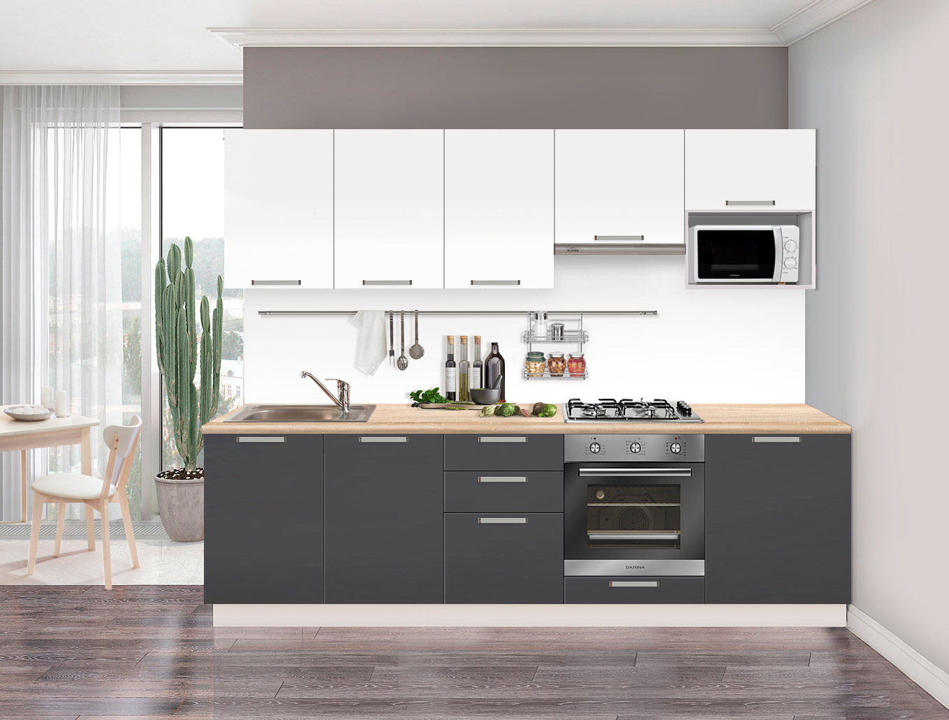 Основным преимуществом нашей мебели является высокое качество, функциональность и разнообразие ее форм, стилистического и цветового решения в сочетании с доступной ценой. Это позволит Вам, вне зависимости от уровня Ваших доходов, получить современную, практичную, и долговечную в эксплуатации мебель, которая сделает Ваш дом удобным, красивым и уютным.Базовая комплектация: L 2,2м, модули + столешница.