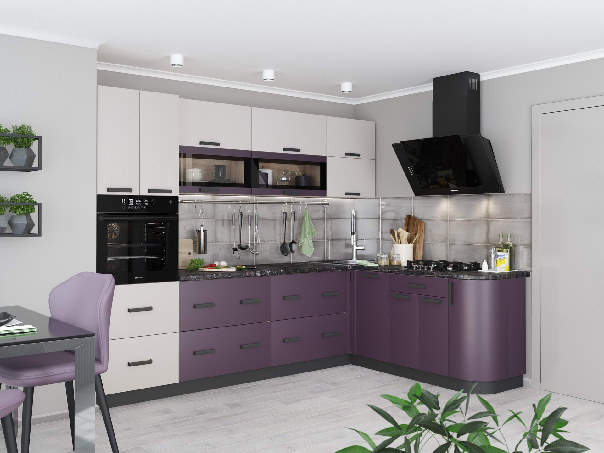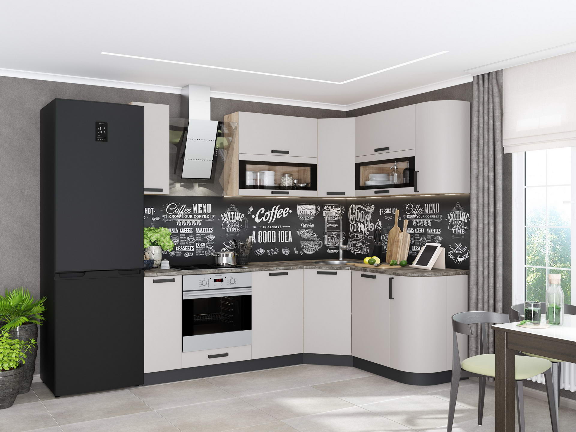 Мебель для кухни "Контемп" имеет модульную программу. Главный предмет гордости кухни "Контемп" - фасады, облицованные суперматовой пленкой ПВХ и, как и ручки, имеющие бархатистую поверхность Soft-touch(мягкий на ощупь). Данное покрытие обладает еще и антипальчиковым эффектом, на нем практически не остается отпечатков.