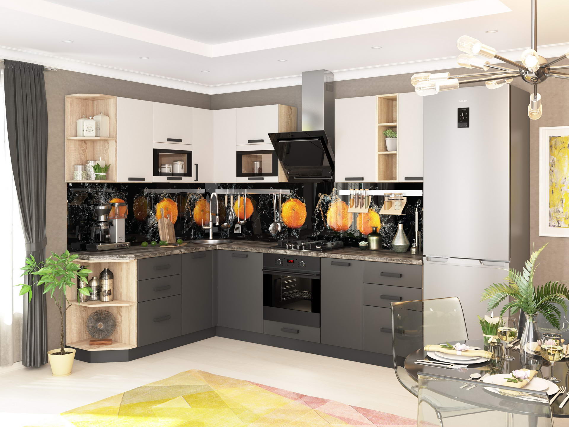 Производитель: мебельная компания Domani. Фасады: МДФ+ПВХ. Цвета фасадов: Слоновая кость, Грей-софт, Графит, Океан, Индиго. Корпус: ЛДСП Дуб сонома.