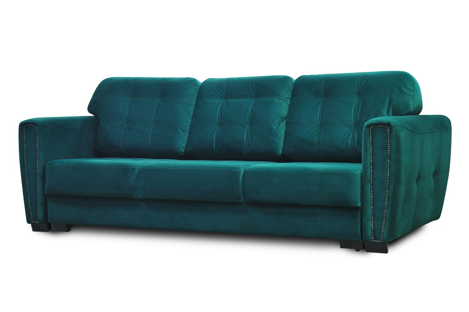 Отстрочка контрастными нитками и декоративные гвоздики на подлокотниках вносят изюминку в данную модель. Спальное место отличается просторностью и комфортом."