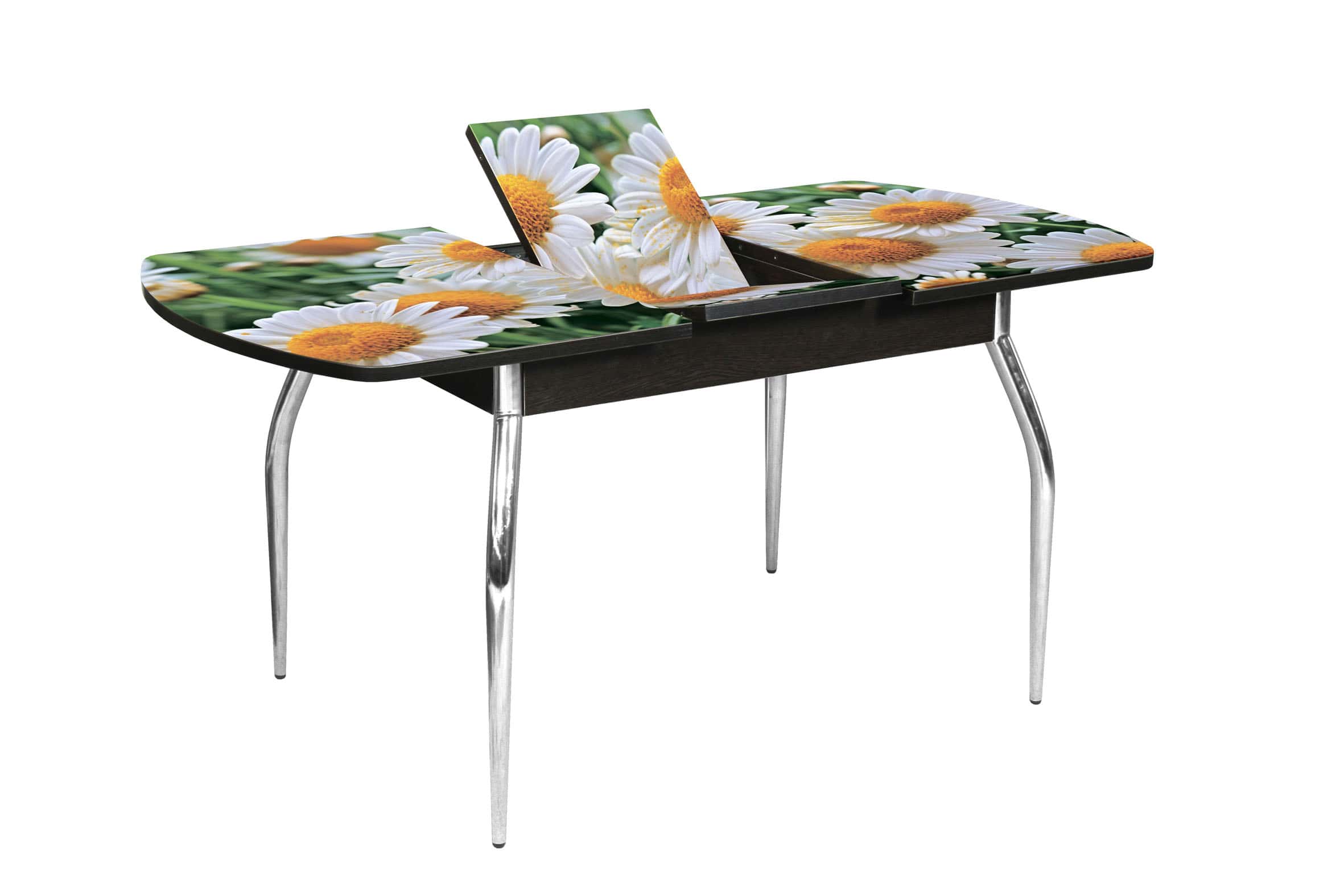 Стол Грация раздвижной. Возможные варианты цветов подстолья : венге, дуб беленый, белый. Варианты опор (ног): изогнутая массив дерева, в цвет столешницы или изогнутая хром. Фотопечать в ассортименте.