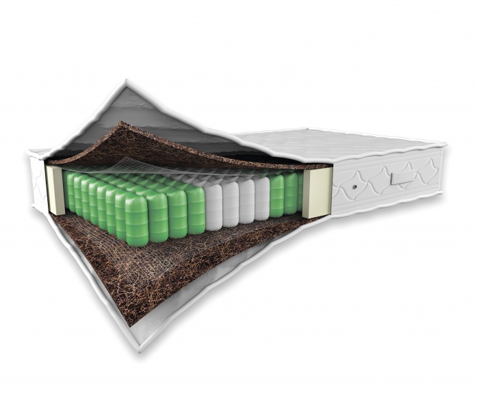 Матрас с высокой жесткостью сторон, рекомендован людям с повышенной массой тела. Высокая кокосовая плита не препятствует качественной поддержке позвоночника, а мягко распределяет нагрузку на пружинный блок.Состав матраса: