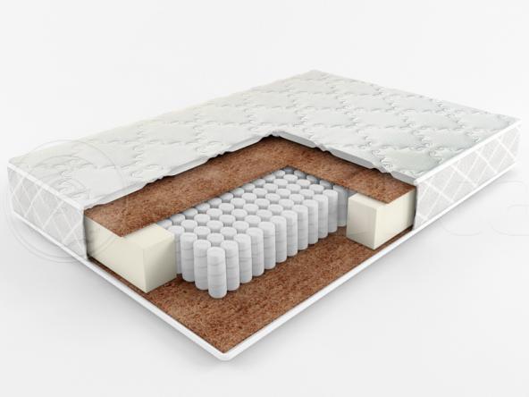 Система дусторонней жёсткости позволяет самостоятельно и без ограничений по времени выбирать, на какой поверхности Вы будете спать сегодня. Сторона с настилом из кокоса толщиной 10 мм придаёт матрасу высокую жёсткость. Сторона с мягким и упругим пенополиуританом тлщиной 10 мм создаёт эффект взбитой перины и обладает отличными анатомическим свойствами.Состав матраса: